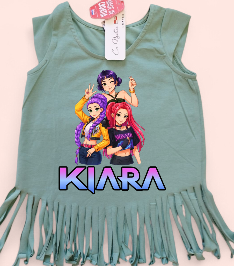 Majica “Huntrix”-personalizirana, ime djeteta po želji, dostupna u više veličina i boja. Željeno ime upisati u “Napomene uz narudžbe” na stranici Plaćanja.