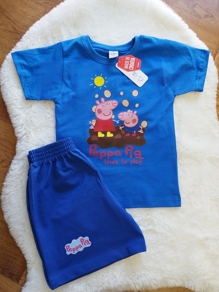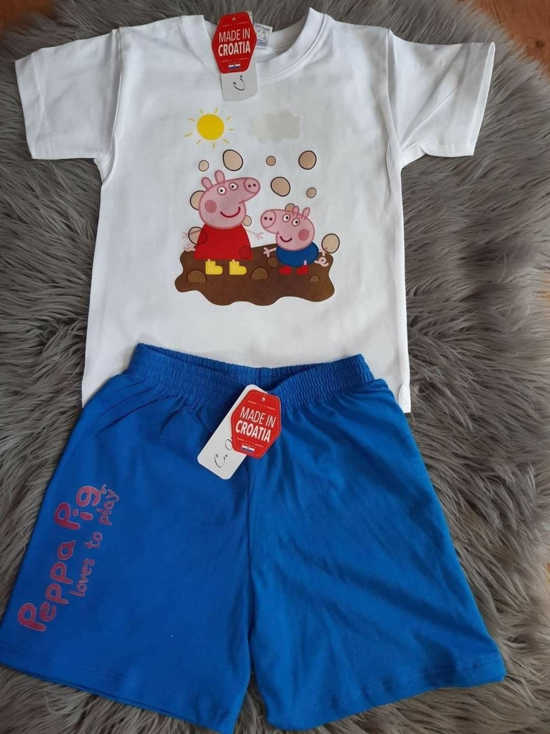 Komplet “Pepa Pig” sa plavim hlačama, majice u raznim bojama, hrvatska proizvodnja.