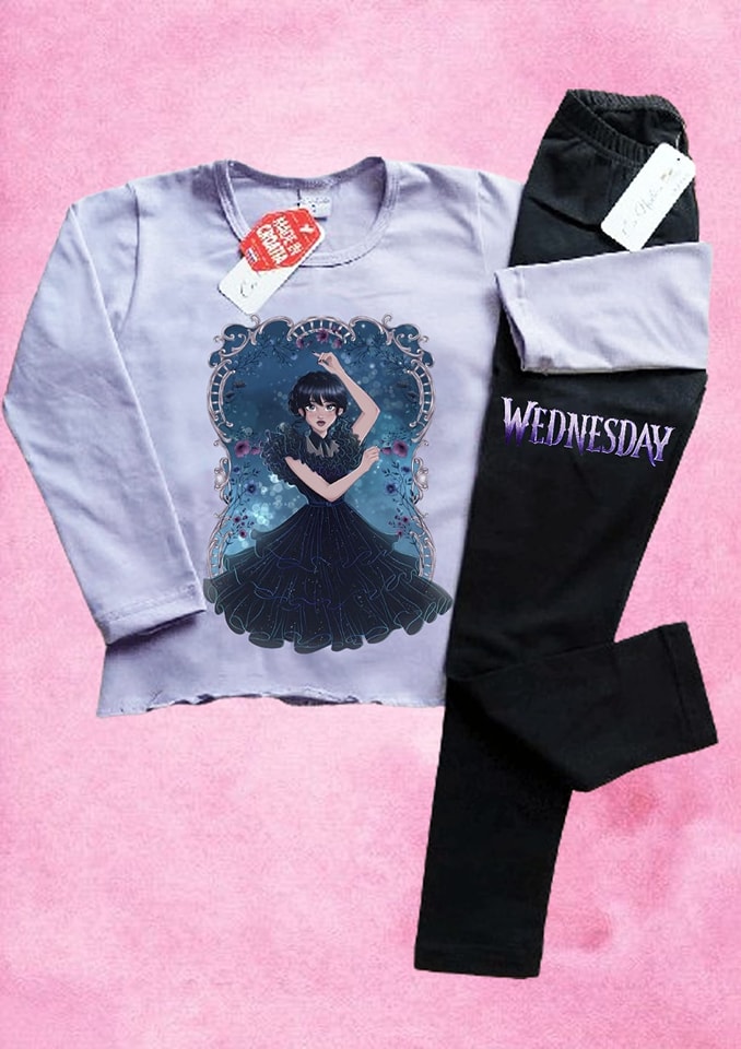 Komplet “Wednesday” dostupan je sa crnim tajicama i majicama u više boja, hrvatska proizvodnja.