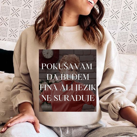 Majica “Pokušavam da budem fina ali jezik ne surađuje” dugi rukav, dostupna je u više boja i veličina.